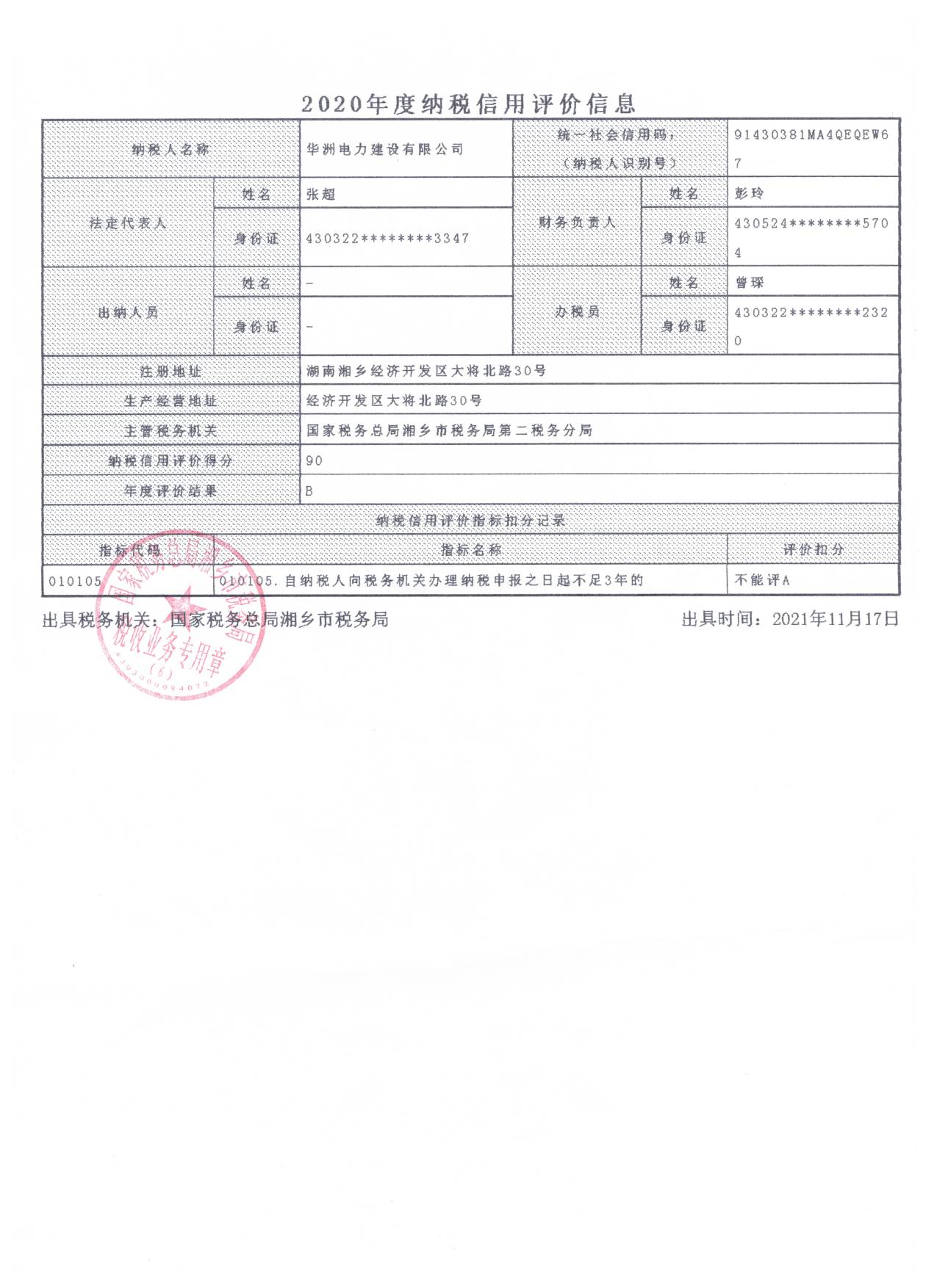 企業(yè)納稅信用等級報(bào)告: