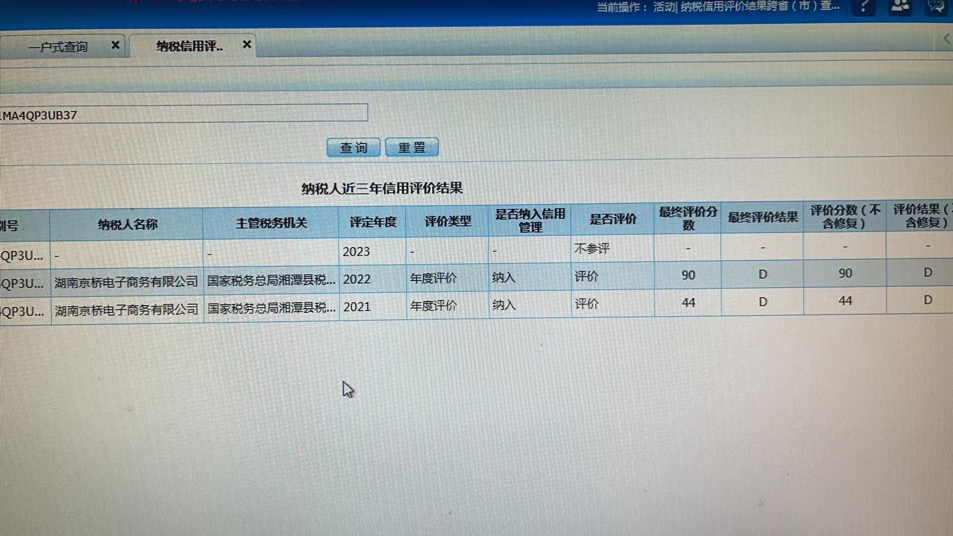 企業(yè)納稅信用等級報告: