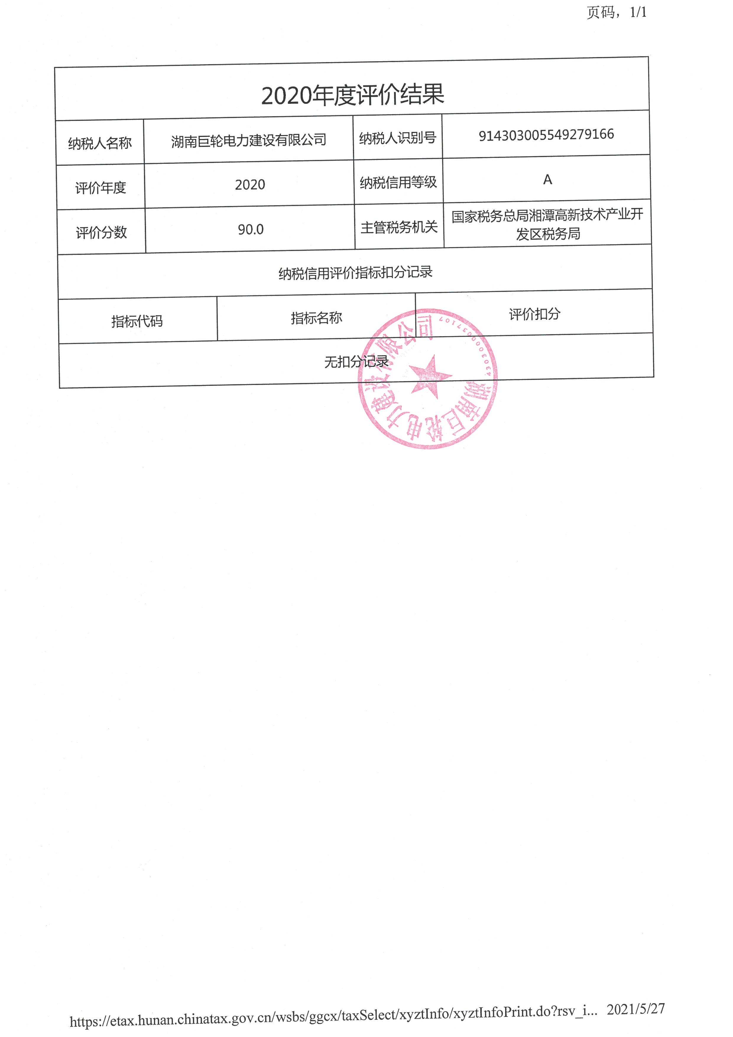 企業(yè)納稅信用等級報告: