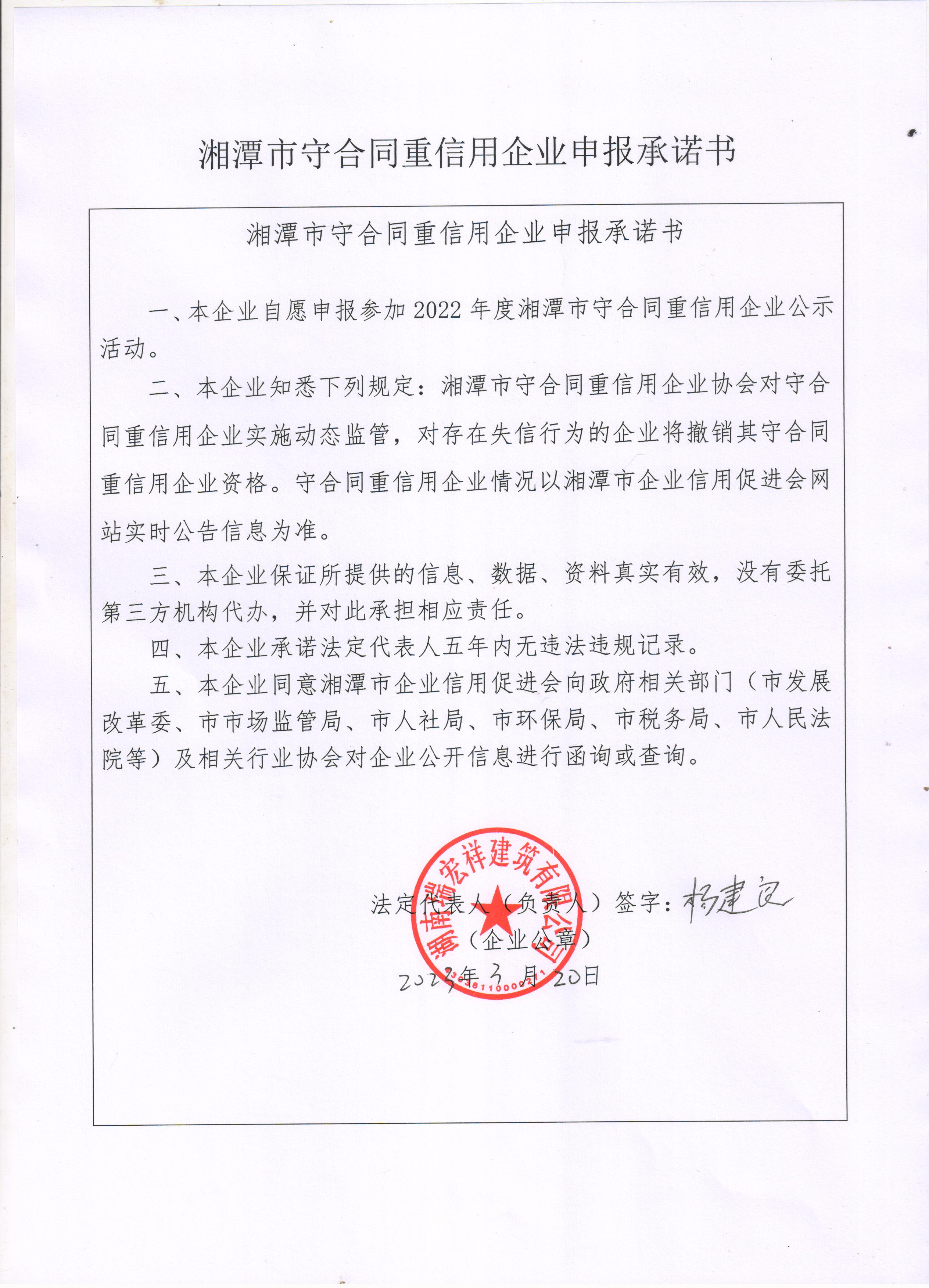 本企業(yè)根據(jù)《湘潭市守合同重信用企業(yè)申報規(guī)定》等編制 2022 年度企業(yè)信用報告書,并保證本報告書內(nèi)容真實、準(zhǔn)確、完整。
