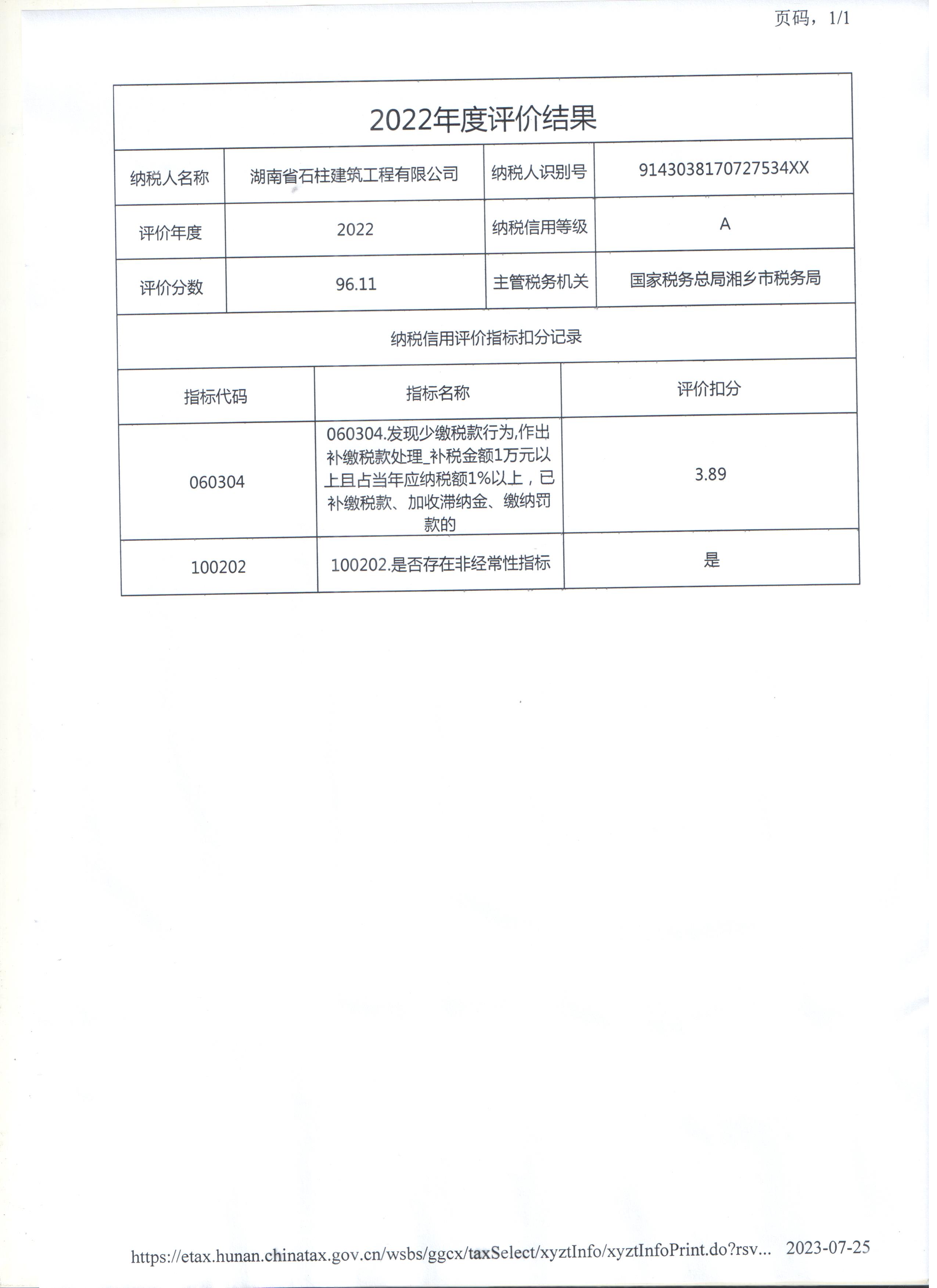 企業(yè)納稅信用等級報告: