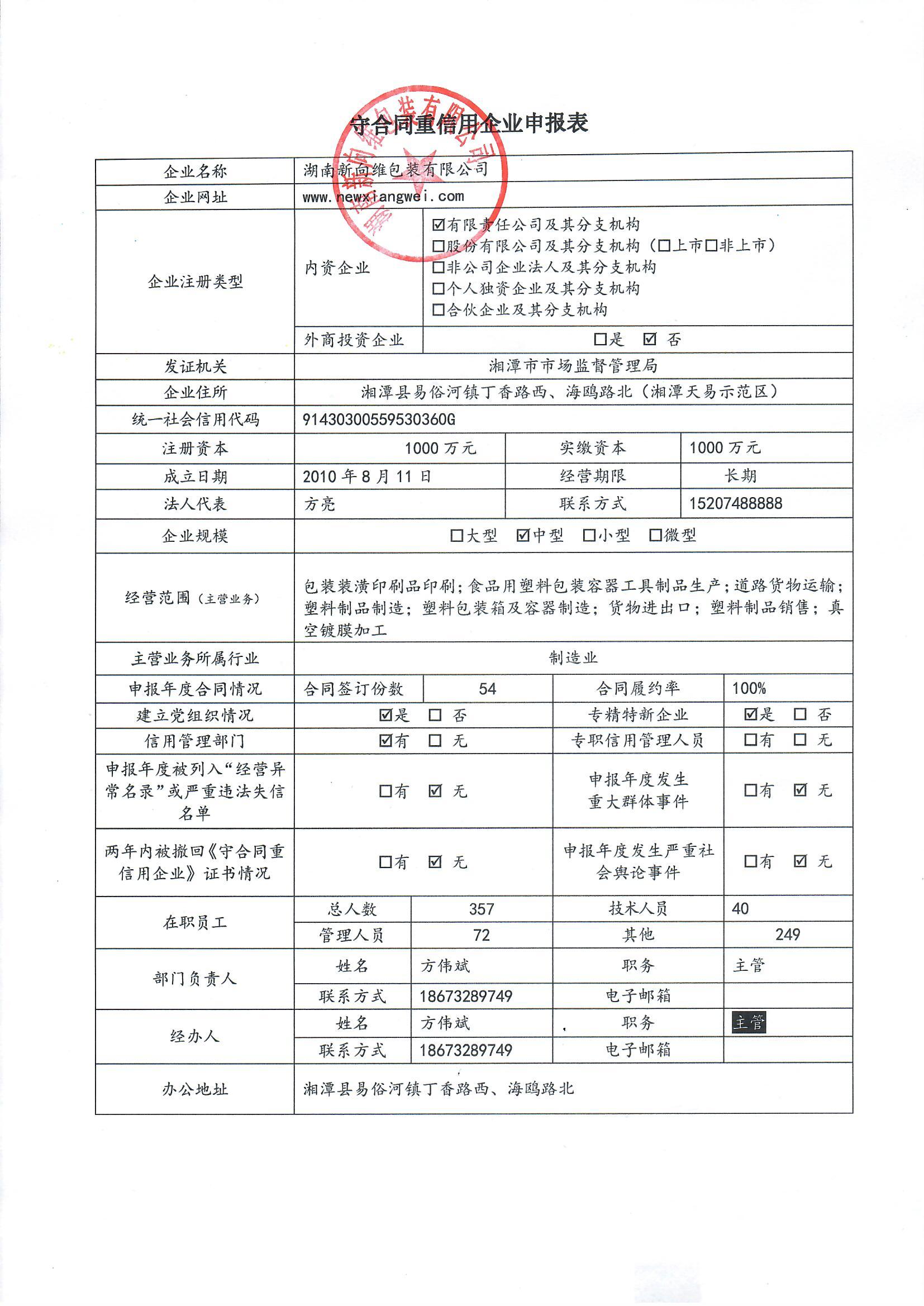 本企業(yè)根據(jù)《湘潭市守合同重信用企業(yè)申報(bào)規(guī)定》等編制 2024 年度企業(yè)信用報(bào)告書(shū),并保證本報(bào)告書(shū)內(nèi)容真實(shí)、準(zhǔn)確、完整。