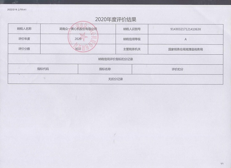 企業(yè)納稅信用等級報告: