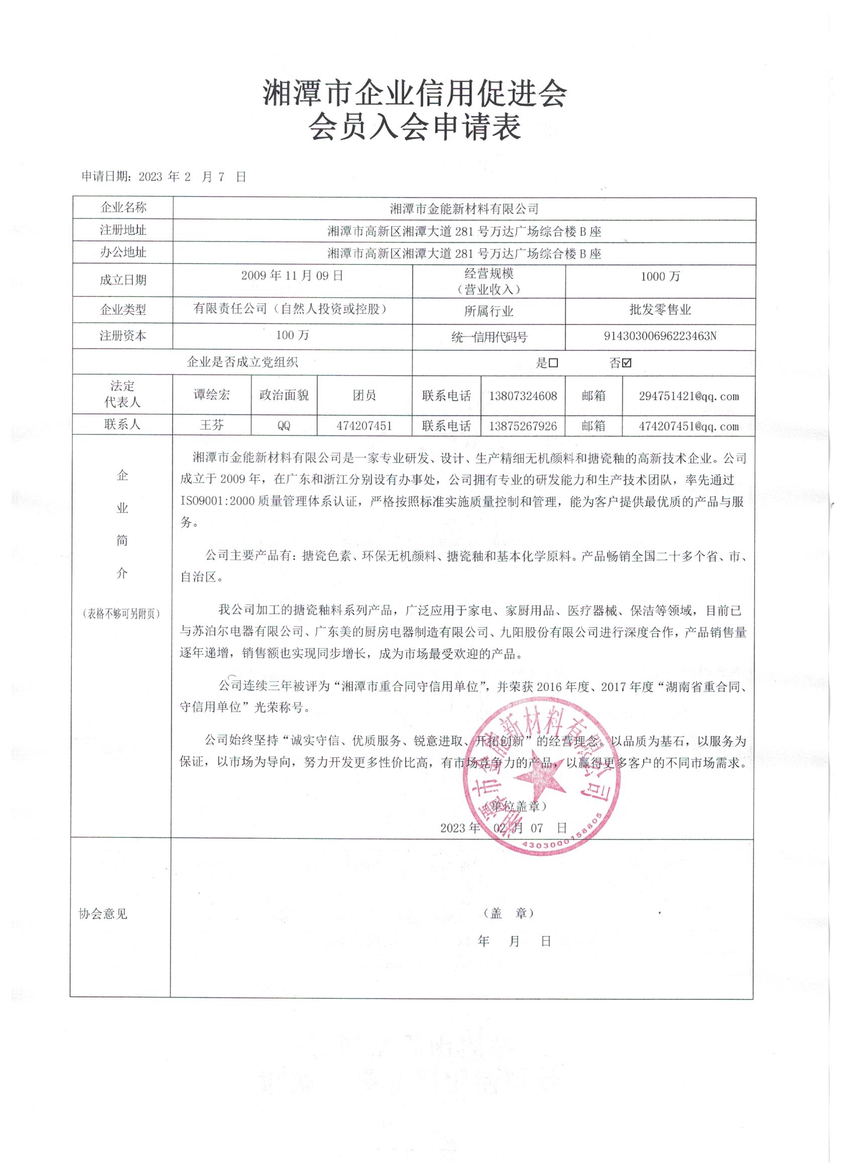 | 名稱: 湘潭市金能新材料有限公司 | 登記證號: 91430300696223463N | 法定代表人: 譚繪宏 | |||||||||